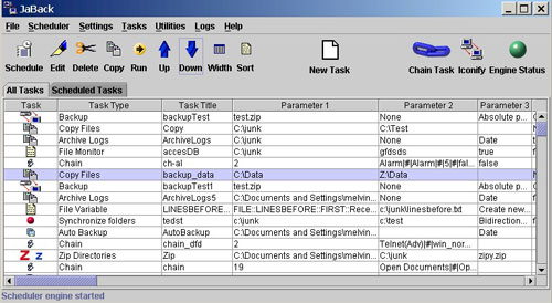 JaBack có nhiệm vụ, lập lịch, các nhật ký kiểm soát và đồng bộ hóa. Một trong những tính năng JaBack có là cho phép khả năng sử dụng các biến. Đây là một tính năng hữu dụng cho việc sử dụng các biến để tìm tập tin tương tự mà không cần phải biết tên tập tin thực sự hoặc địa điểm của chúng. Có nhiều biến mà bạn có thể sử dụng để tìm và sao lưu các tập tin của bạn. Nó thậm chí cho phép kiểm tra cú pháp nội bộ, do đó bạn có thể xác minh biến mà bạn đã nhập.