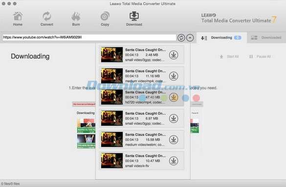Tất cả video được phát hiện sẽ được hiển thị với chất lượng khác nhau. Bạn có thể lựa chọn một cái mà có độ phân giải phù hợp. Sau đó, nhấn chuột vào biểu tượng download để bắt đầu tải về. Quá trình tải về có thể được xem trước trong bảng Downloading.