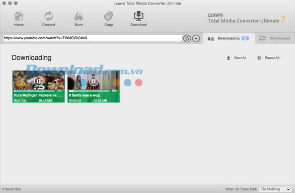Trong thẻ Downloaded, bạn có thể xem tất cả video được tải về. Đồng thời, bằng cách kiểm tra video được tải về và nhấp chuột phải vào nó, bạn có thể lựa chọn Add to Convert, Add to Burn, vv.