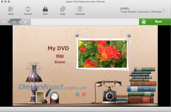 Nhập hình ảnh, video, bài hát cá nhân làm background, thay đổi menu chính và tiêu đề chương, điều chỉnh màu sắc văn bản của tiêu đề, kích thước, phông chữ, vv. Sau đó, lưu menu đĩa được chỉnh sửa để sử dụng sau này.