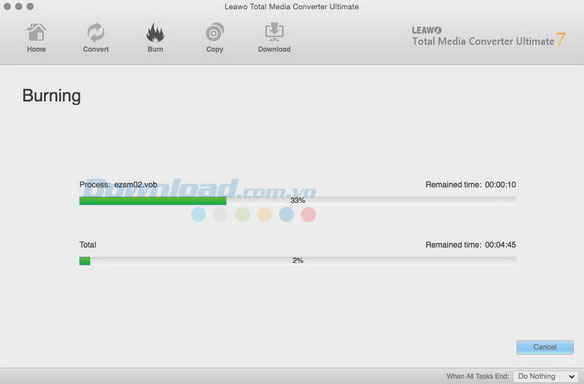 Cuối cùng, nhấn nút Burn ở phía dưới của thanh sidebar để bắt đầu ghi video ra đĩa Blu-ray/DVD.